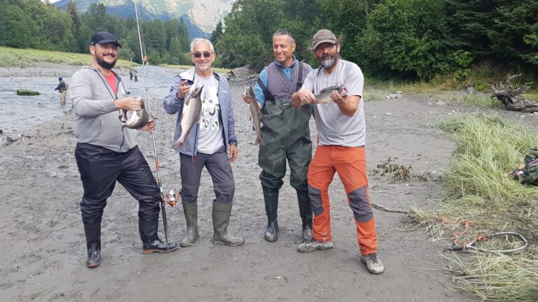 Для ваших удобства и комфорта у нас собственный глэмпинг и аляскинская дровяная баня, а также высокопроходимый Mercedes Sprinter — идеальный для путешествий в условиях Аляски. А свежий лосось и красная икра — всегда из нашего собственного улова.